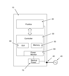 - An automated fluid handling system with a controller that monitors power sources, utilizes a backup power source to suspend operations during power shortages, saves process status information, and verifies the safety of resuming processes upon power restoration, allowing for automatic or user-confirmed resumption based on predefined settings.